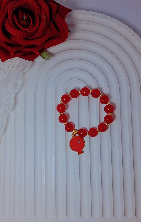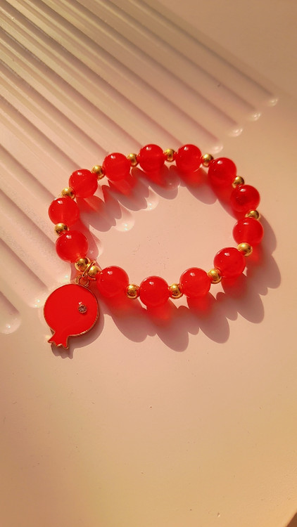🍉❤️ دستبند یلدایی با مهره قرمز و آویز انار – زیبا، خاص و کاملاً مناسب شب یلدا